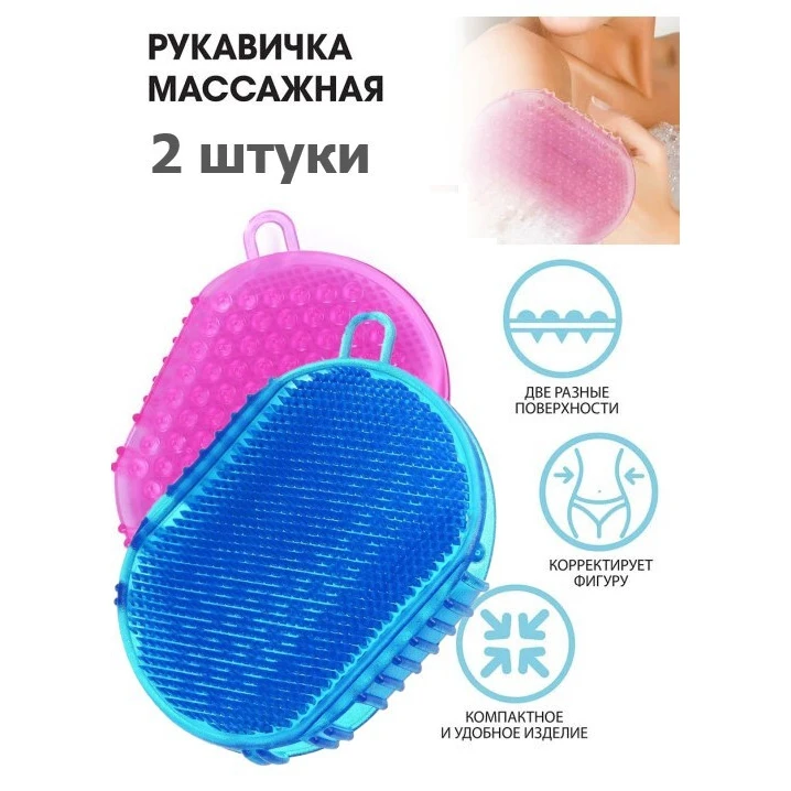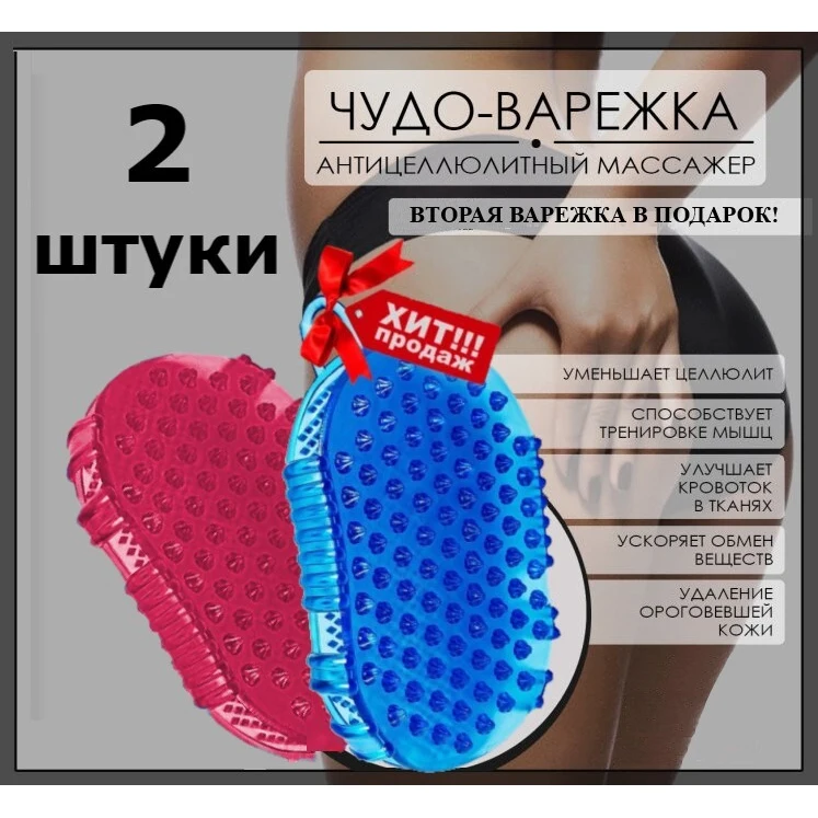 Массажер для тела антицеллютный 2 шт / Чудо - варежка / массажная щетка для тела / Щетка для сухого масажа / Рукавица, мочалка антицеллюлитная массажная / Мочалка силиконовая