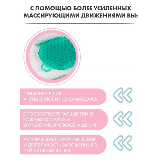 Массажная щетка - двусторонний ручной массажер для антицеллюлитного и расслабляющего массажа тела в домашних условиях. Можно использовать как на сухую, так и на распаренную кожу. Массажная рукавичка удобно надевается на руку, что позволяет комфортно регулировать интенсивность воздействия. Две разные поверхности: для расслабляющего и антицеллюлитного массажа. Стимуляция кровообращения, лимфотока. Повышение упругости и эластичности кожи. Подходит для чувствительной кожи. Компактное и удобное изделие.