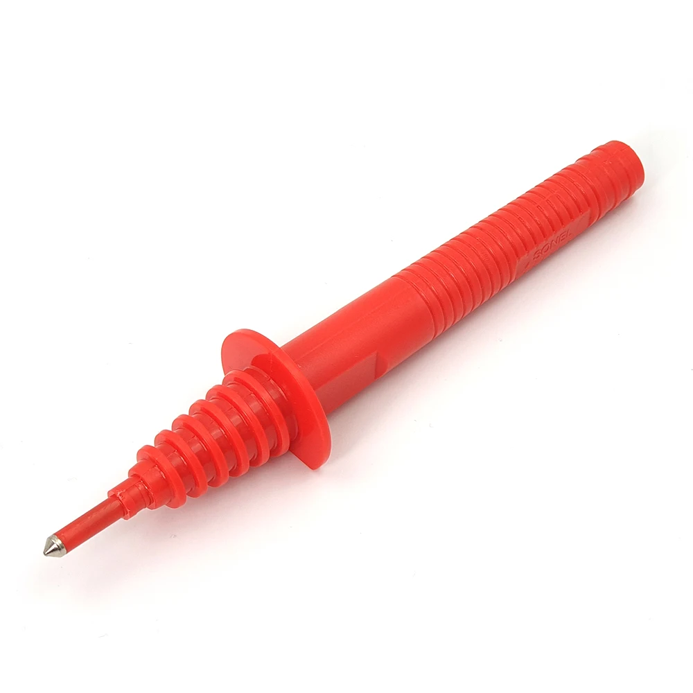 Данный тип зондов можно назвать универсальным, т.к. используется со многими моделями приборов при измерении различных параметров. Используя зонд, можно подключиться как к открытым токоведущим частям, так и к линии через стандартную розетку. Для предотвращения проскальзывания и попадания на открытые части электроустановки на рукоятке зонда имеется специальный упор. С одной стороны упор имеет срез, необходимый для подключения двух близко расположенных зондов (подключения к контактам розетки). Острое окончание зонда позволяет прокалывать оксидную плёнку, загрязнения, ржавчину, что увеличивает точность проведенного измерения. С обратной стороны от острия зонда расположен стандартный разъём типа «банан» 4 мм для подключения измерительных проводов, зажимов Крокодил изолированныйхтипа K01, К02. Категория измерений ГОСТ IEC 61010-2-030-2013: CAT III 1000 V (до 1000 Вольт). Длина 15 см.