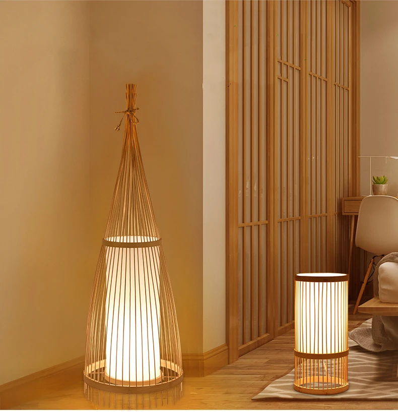 Homestay bedroom bedside lamps Corridor LED lamps and lighting Direct selling Southeast Asian bamboo woven floor lamps