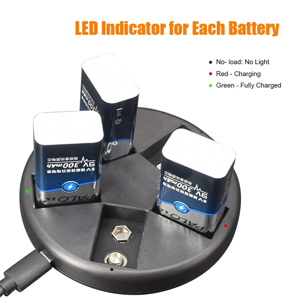2/5 слотов 6F22 9 в зарядное устройство USB зарядное устройство умный светодиодный дисплей зарядная станция для 9 в литиевых никель-кадмиевых аккумуляторов