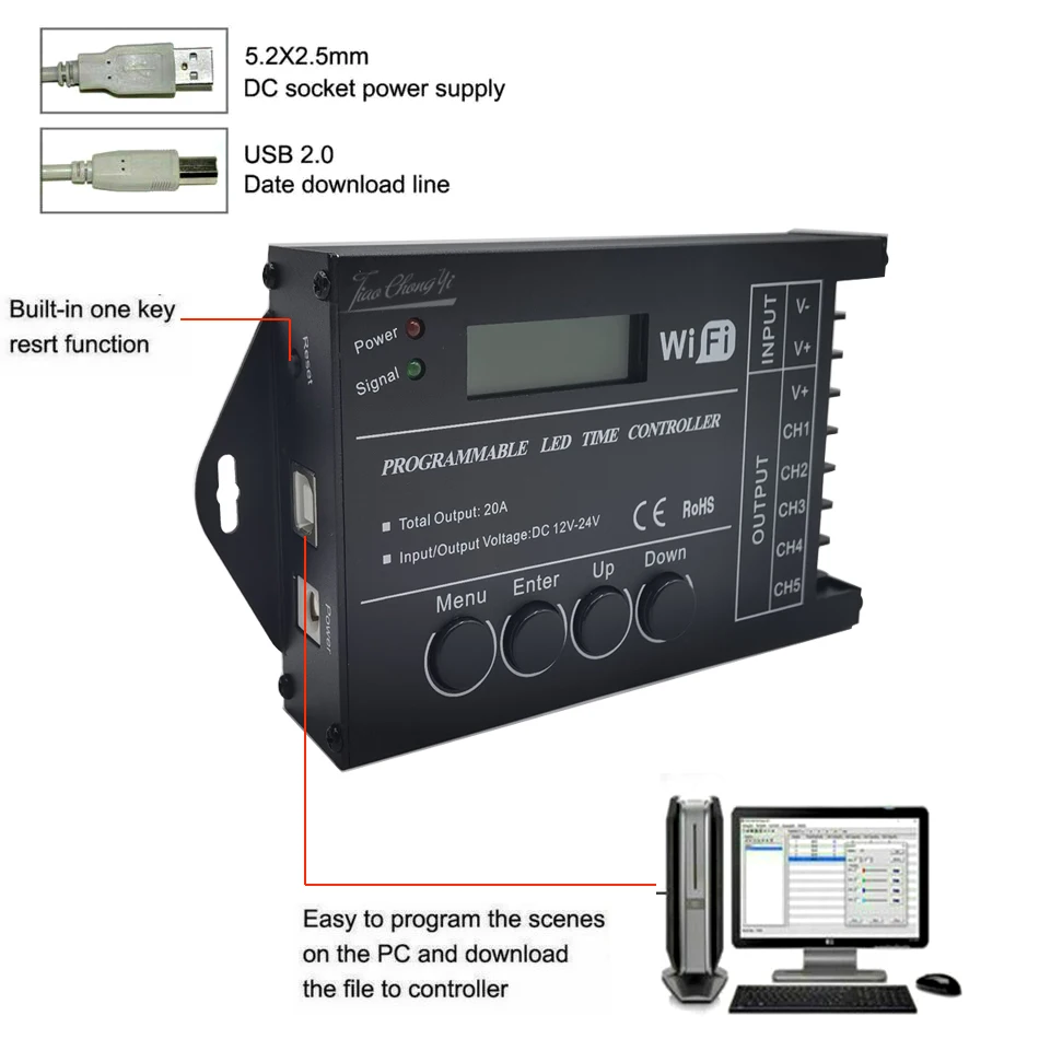 Вот верхний компьютер в программируемом контроллере времени, чтобы изменить выходную нагрузку с течением времени, клиент может настроить режим расписания, который они хотят, через верхний ПК. Затем через порт USB для загрузки необходимого расписания к контроллеру. Верхний ПК в дополнение к функции редактирования режима расписания, это также может быть время установки для контроллера из-за синхронной функции часов верхнего хоста. Если пользователь хочет увидеть эффект режима расписания после редактирования, он может использовать функцию быстрого сева верхней части. Из-за отсутствия функции удаления верхнего хоста, Отображение имени режима будет пустым до тех пор, пока вы выполните удаление. Этот контроллер может управлять нагрузкой светодиодного эффекта изменения не более пяти каналов. И он может быть использован в случае светодиодный светильник s, светильник рекламы коробки, сцены, украшения дома и т. Д.