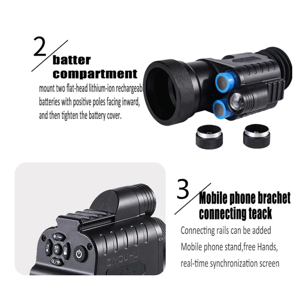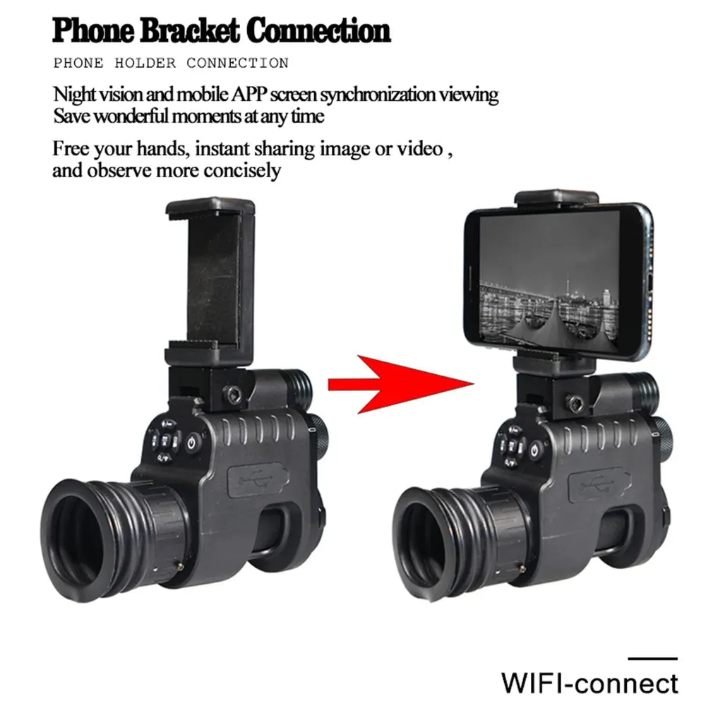 5. Мобильный телефон с кронштейном: устройство ночного видения и экран приложения на мобильный телефон синхронизируются, чтобы просмотреть прекрасные моменты, которые вы сохраняете в любое время, освободить руки, поделиться экраном в режиме реального времени, И более лаконично наблюдайте.