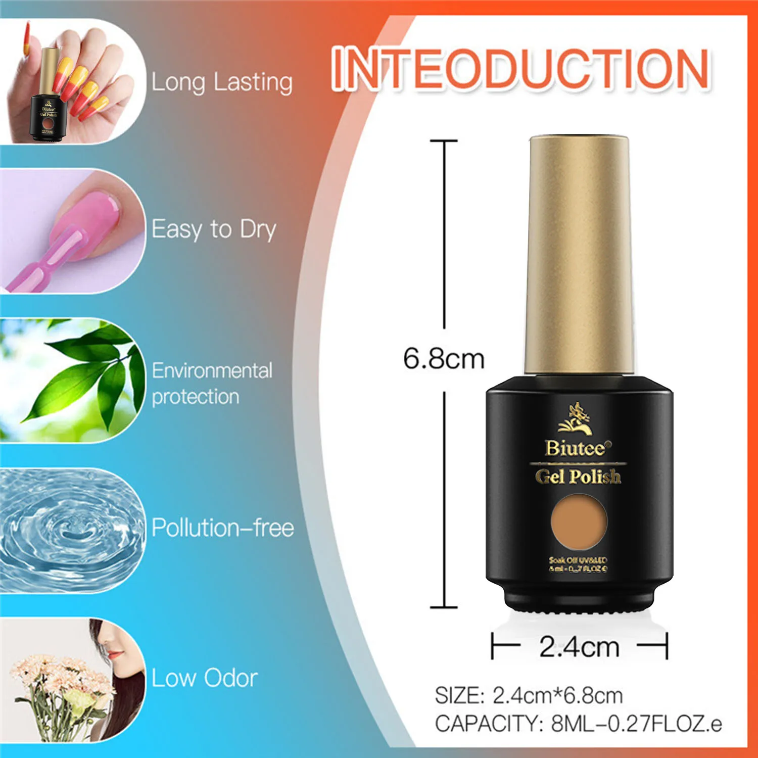 【Натуральный gel Набор гель-лака изготовлены из натуральной смолы, не-к-xic ингредиенты, чтобы сделать его безопасным, здоровым и низким запахом. Натуральные ингредиенты имеют большое покрытие и гладкое покрытие, которое не навредит вашей коже и ногтям.