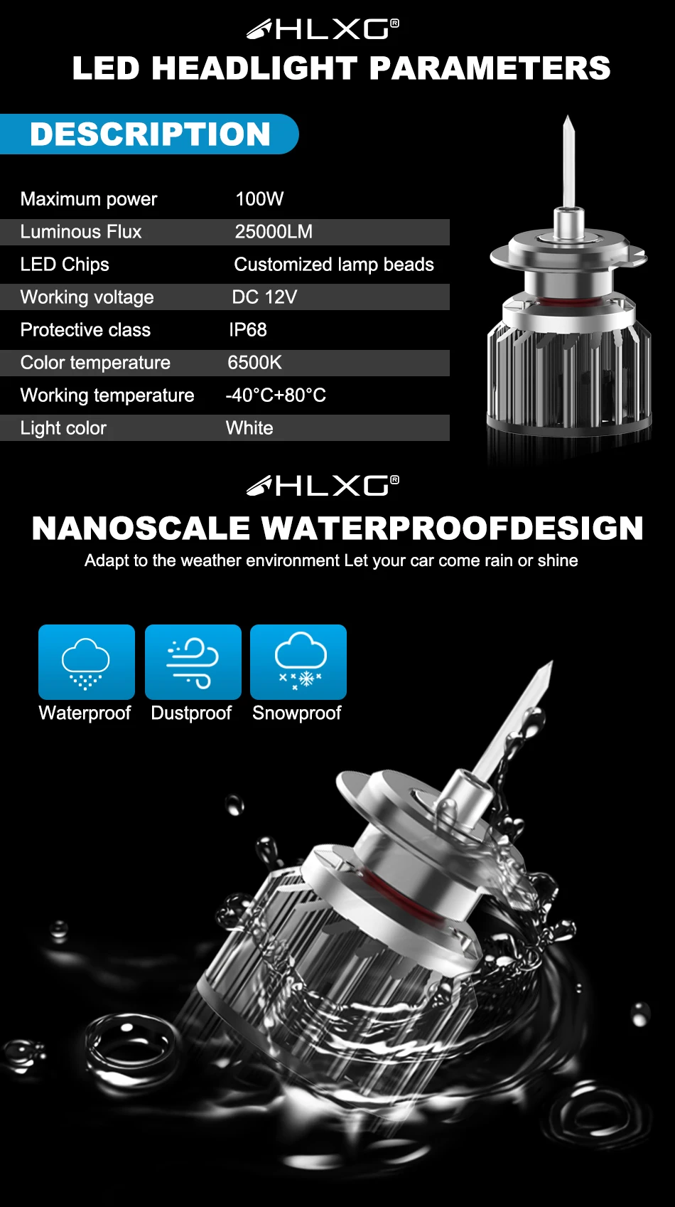 Большая часть HLXG светодиодный свет имеет canbus функция с ЭМС система, которая может подойти для большинство автомобилей во всем мире. Другой светодиодный светильник не может быть совместим со многими автомобилями на рынке. Но мы не можем сказать, что наш светильник подходит на 100%, потому что оригинальный светильник для автомобиля постоянно меняется и совершенствуется.