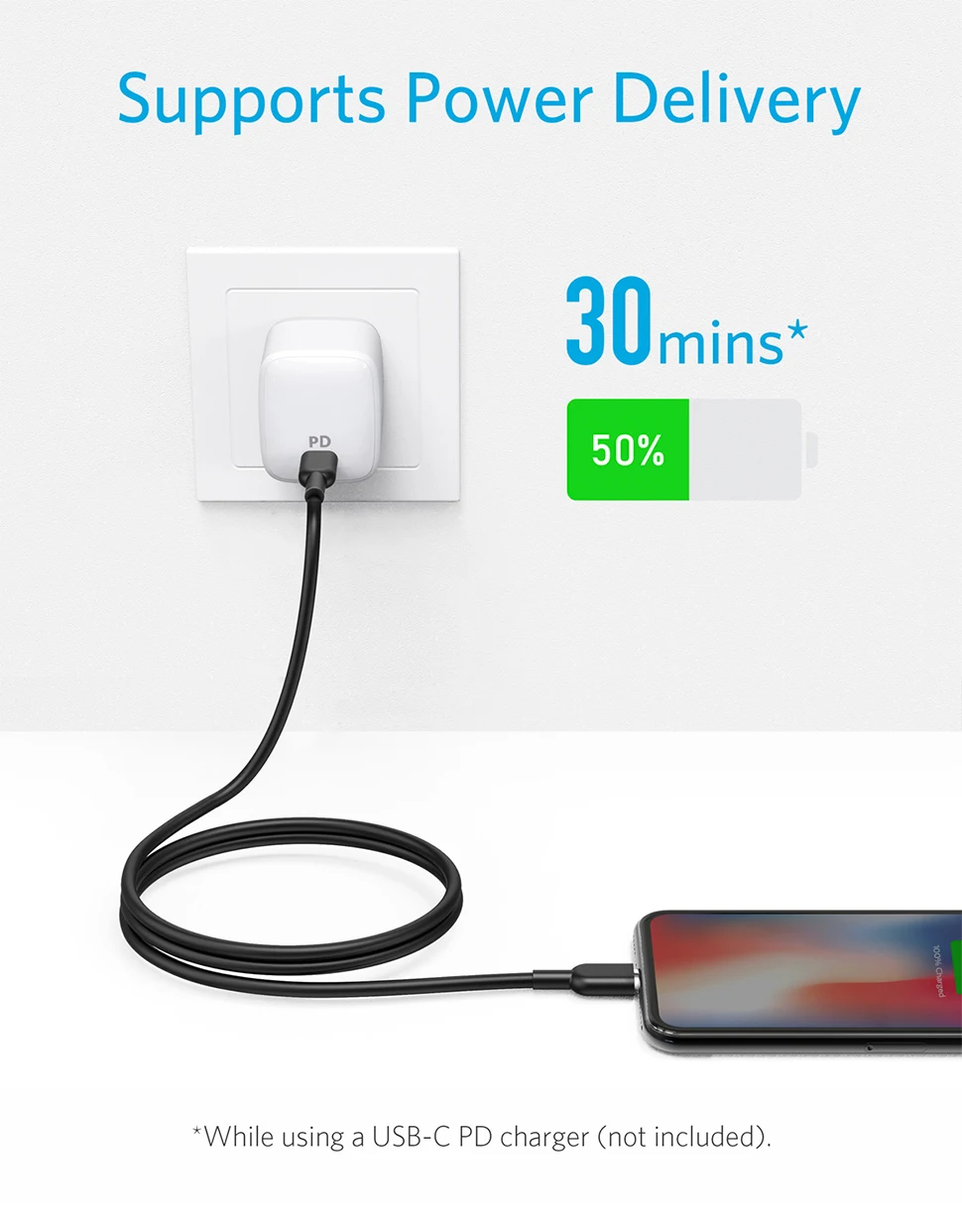 Используйте этот кабель с USB-C зарядным устройством (включая Apple 18W 29W,