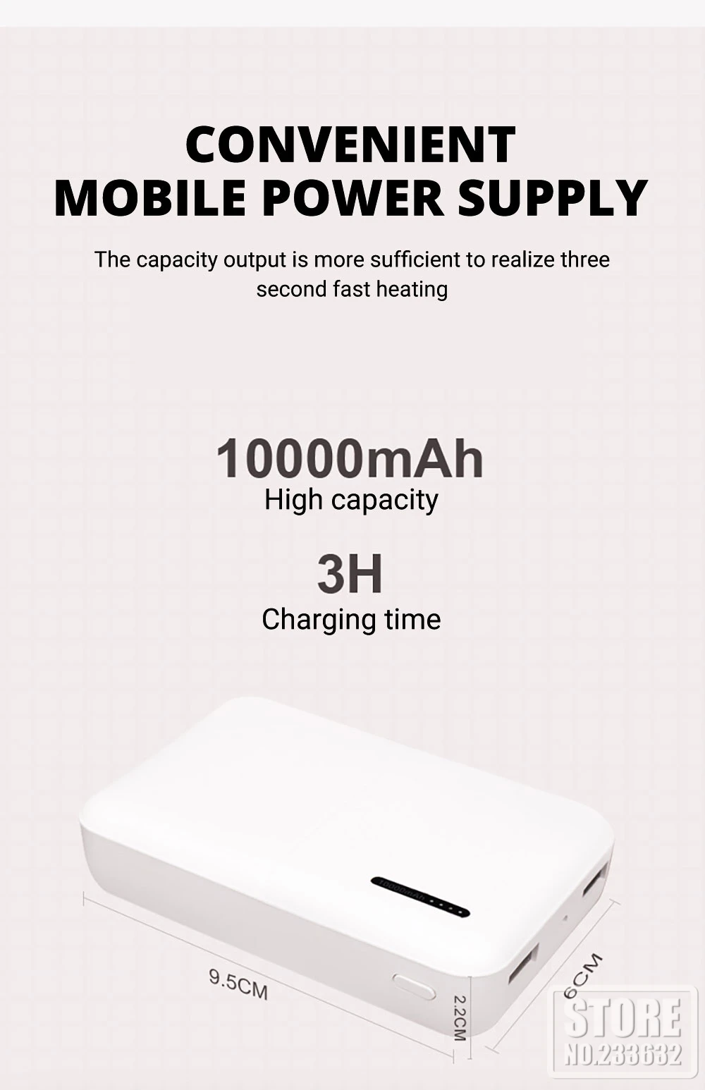 Источник питания: внешний аккумулятор USB (не входит в комплект, внешний аккумулятор 10000 мАч может нагреваться в течение 5-7 часов)