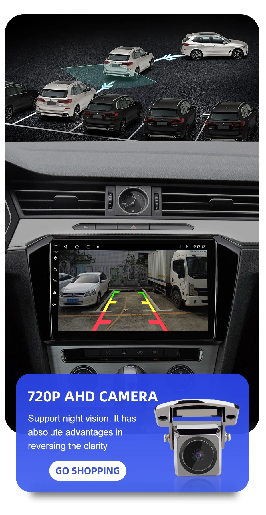 Поддержка камеры заднего вида 720P AHD. Изображение более четкое. (Камера в комплект не входит)