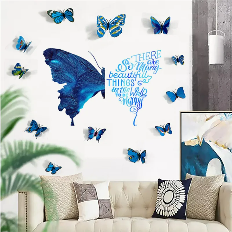 Синие Бабочки и 12 штук 3D Переводные картинки с бабочками наклейки на стену для девочек декор комнаты (1346)