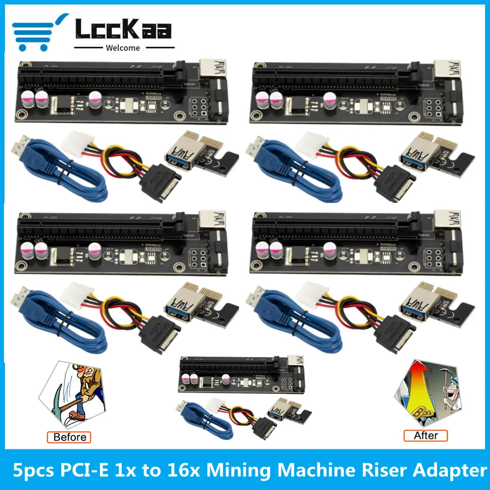 5 шт. карта pci-e кабель-удлинитель, ver006 pci-e 1x до 16x riser, в том числе sata 4-контактный разъем usb 3,0 мощность для Btc Майнер машина pci e удлинитель для головок