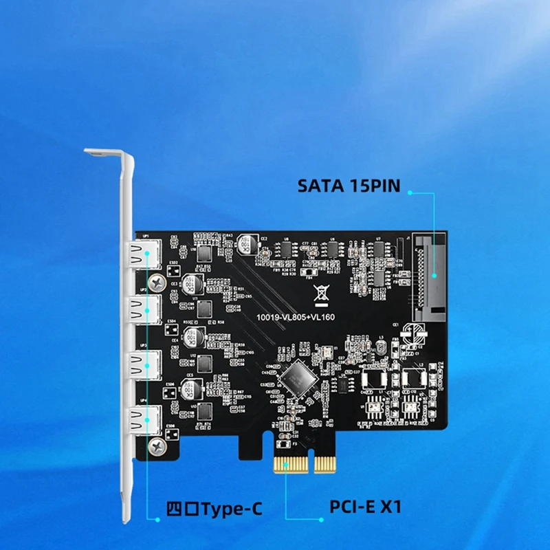 Pci-E к двойной тип-c USB3.1 карта расширения 4 порта 5 Гбит/с высокоскоростной адаптер типа C карта Pcie конвертер Tc USB 3,1