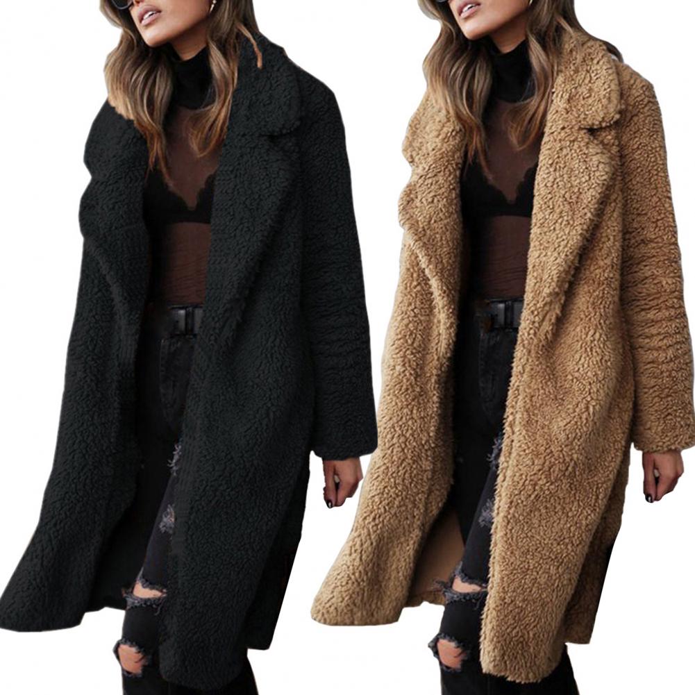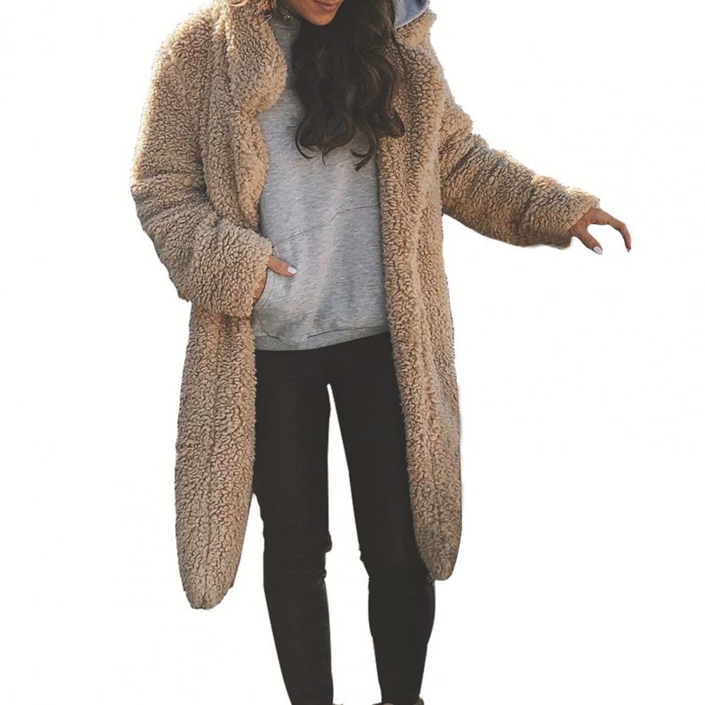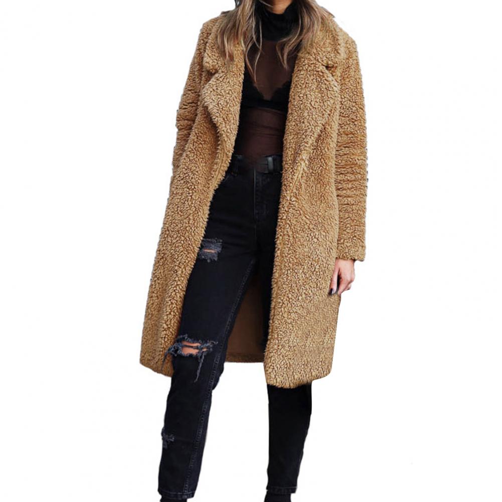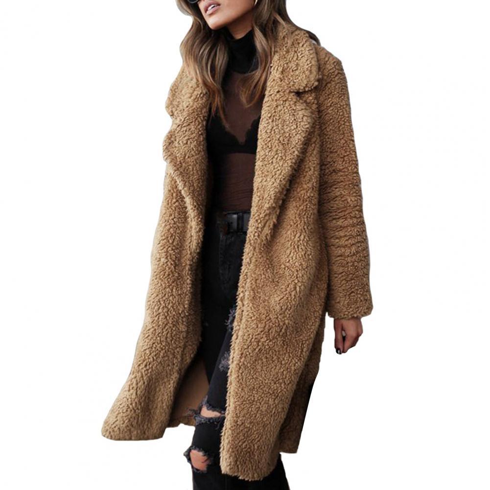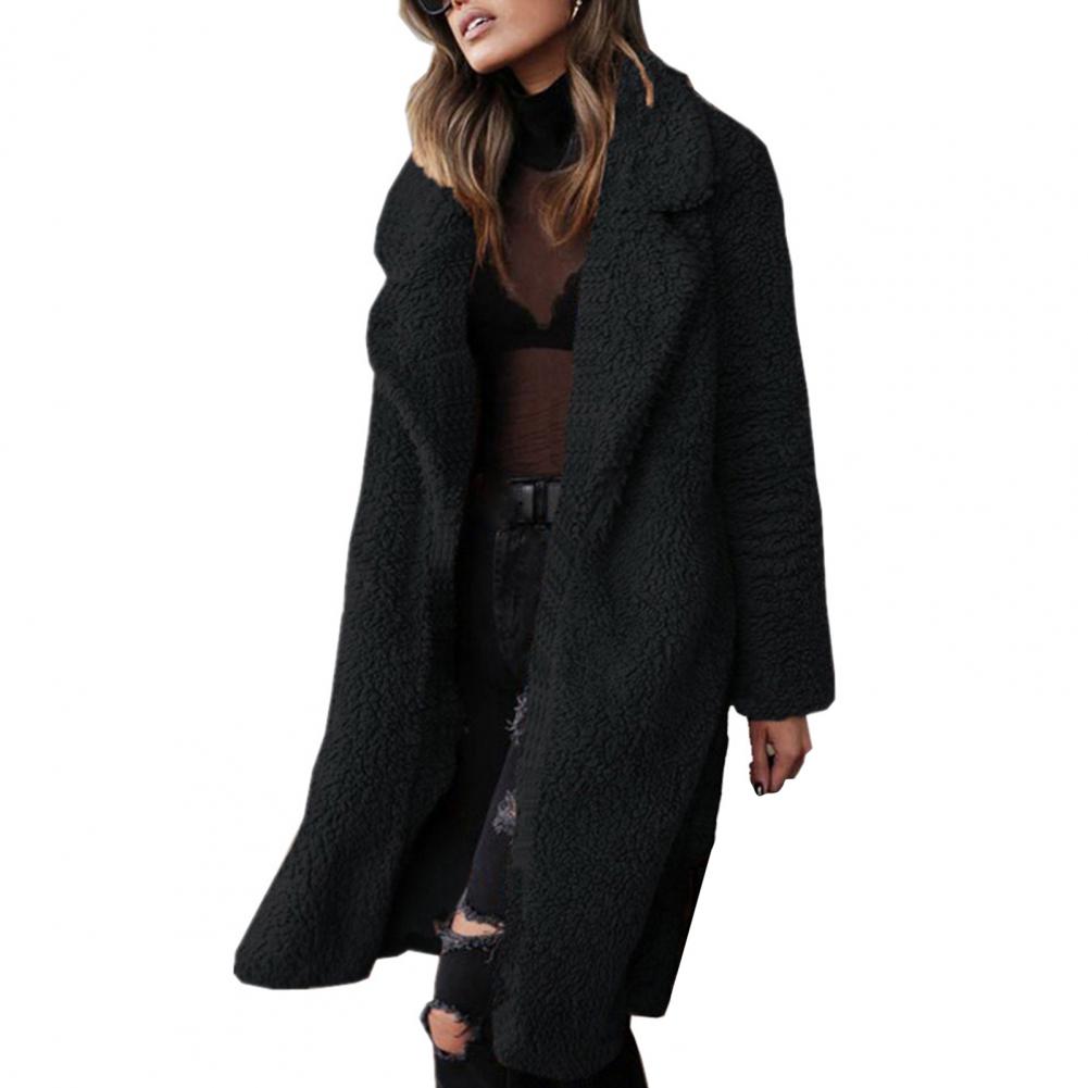 Благодаря плюшевому дизайну, однотонное пальто с длинными рукавами сохраняет тепло и тепло в холодную погоду.