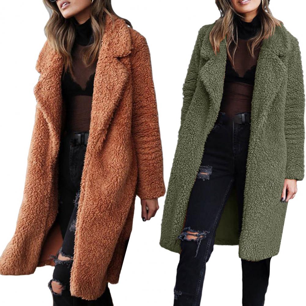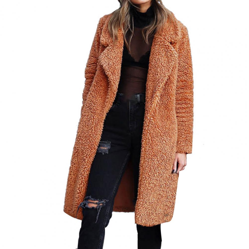 2021 осеннее теплое зимнее пальто, женское плотное однотонное пальто большого размера с плюшевой подкладкой, женское повседневное длинное плюшевое пальто для повседневной носки