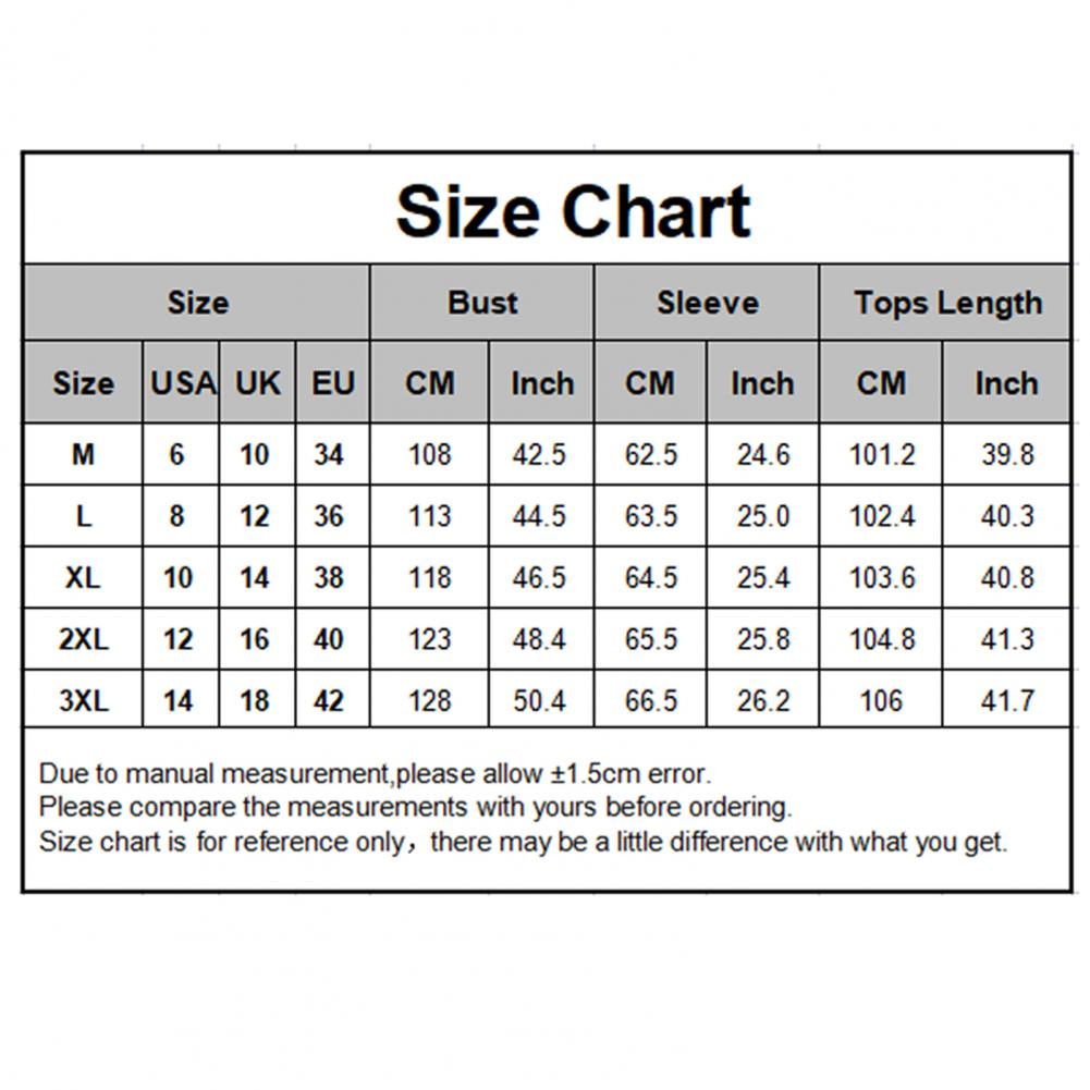Размер: 3XL, обхват груди: 128 см/50,4 дюйма, рукав: 66,5 см/26,2 дюйма, длина: 106 см/41,7 дюйма (прибл.)