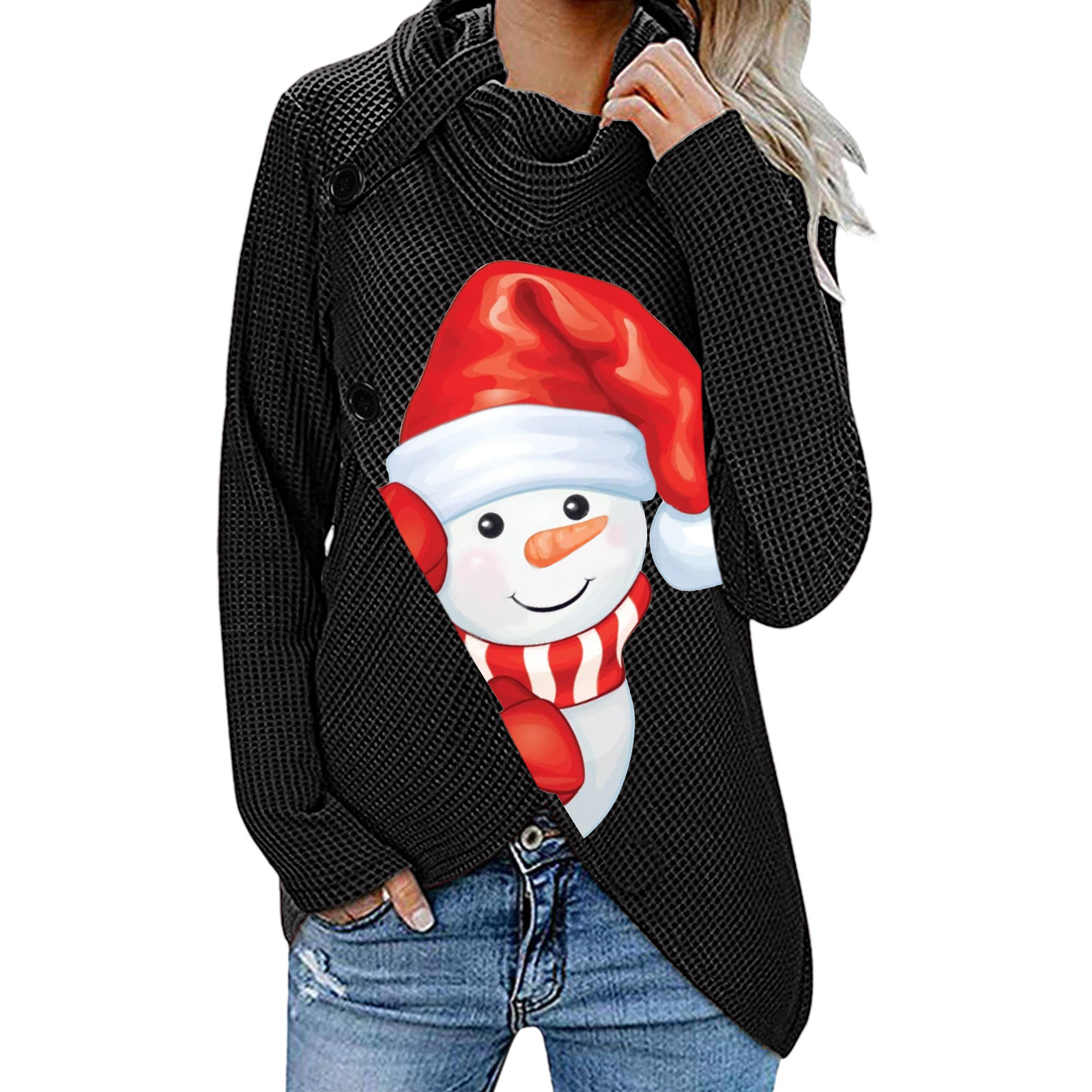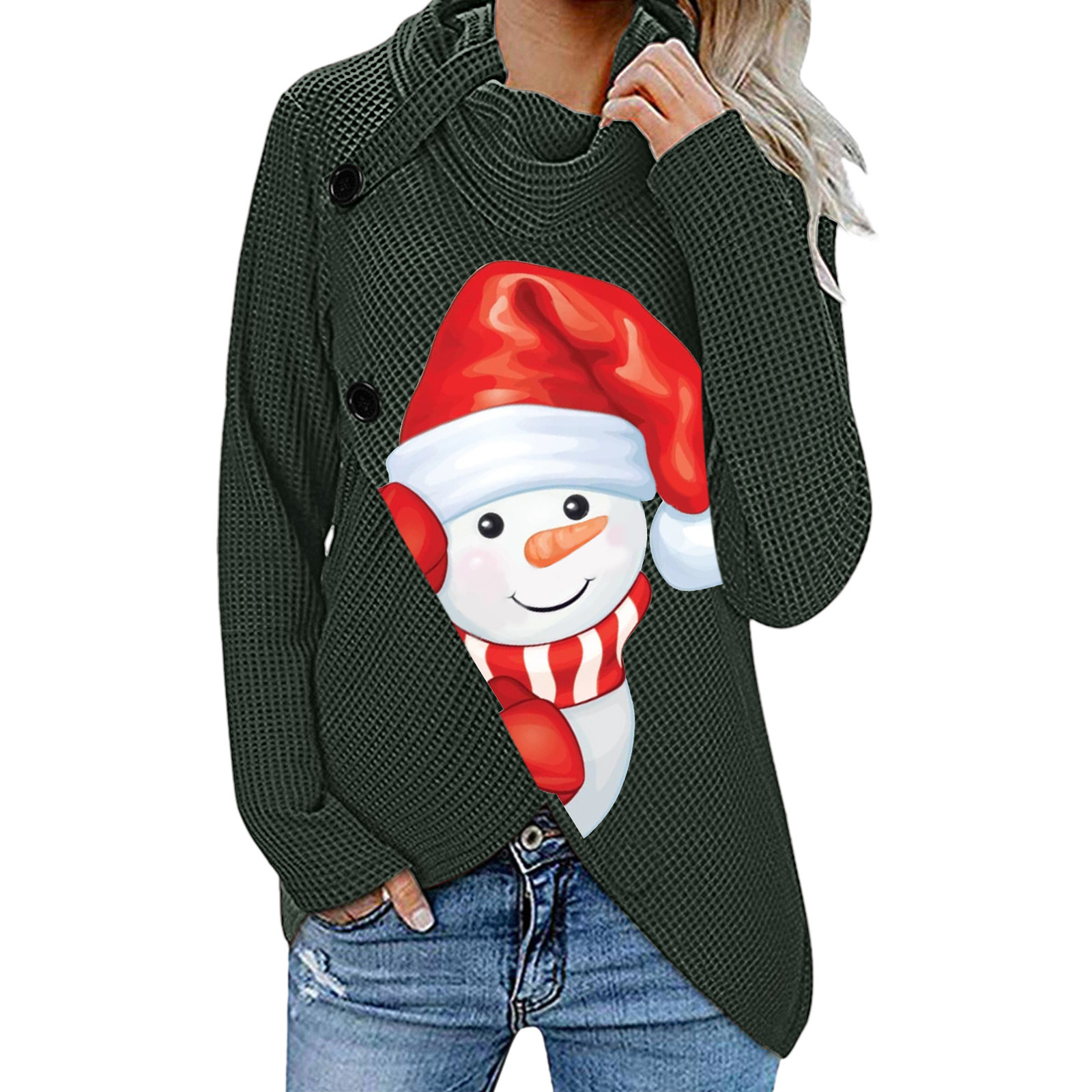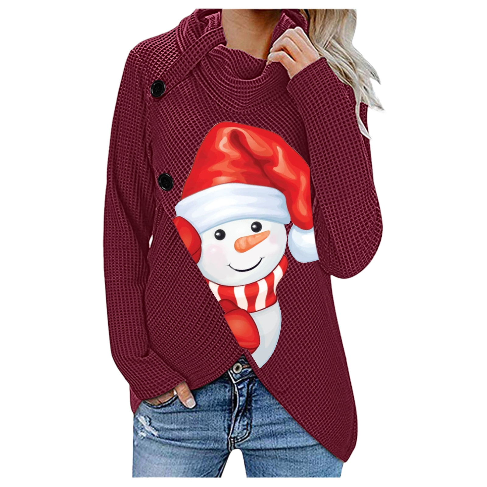 Женский модный свитер с длинными рукавами на пуговицах с рождественским принтом, пуловер, топы, блузки, рубашки