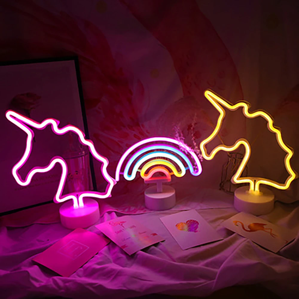 Неоновая вывеска USB LED украшение единорог Радуга семейная детская комната прикроватный ночной Светильник детский декоративный светильник