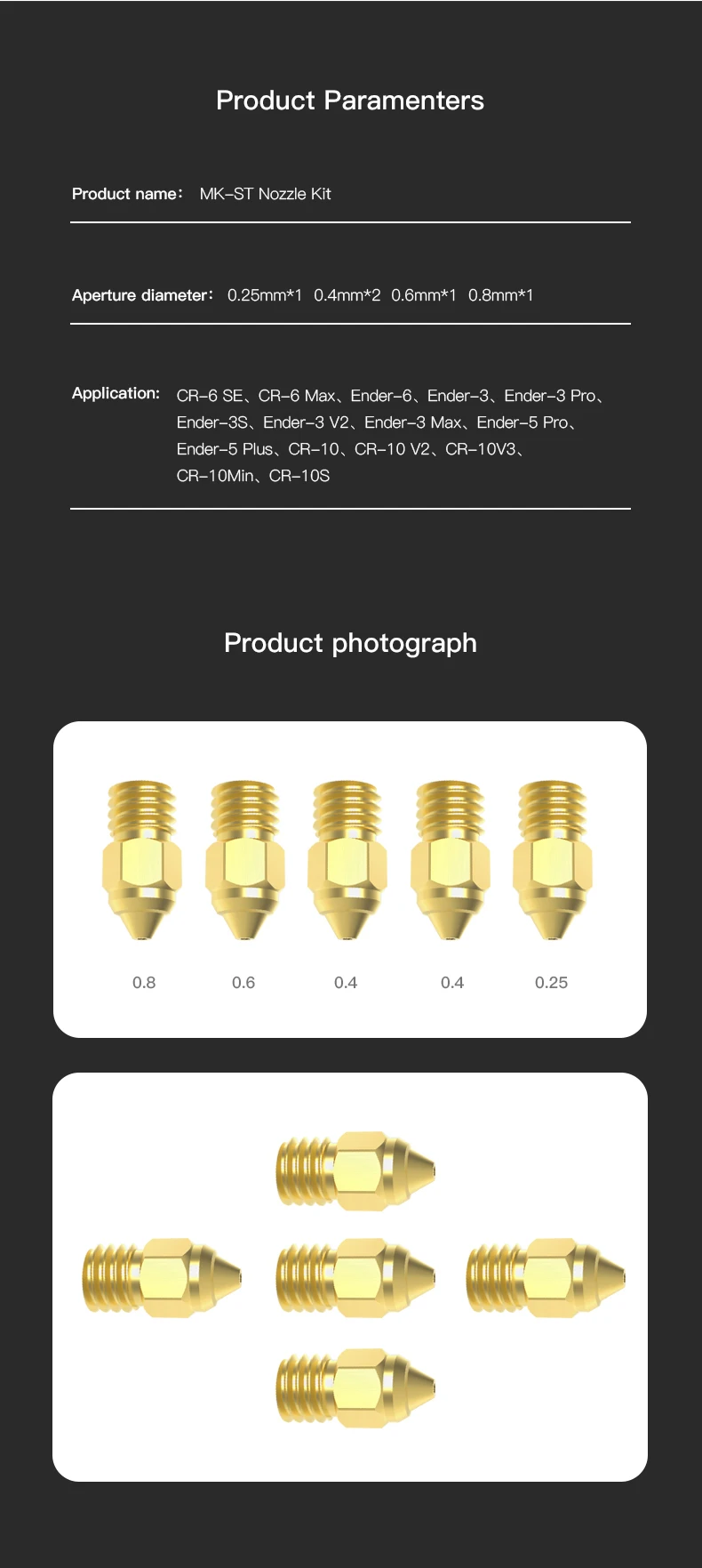Запчасти для 3D-принтера CREALITY, MK-ST набор соплов, 5 шт./компл., разные размеры, оригинальный бренд, Новинка
