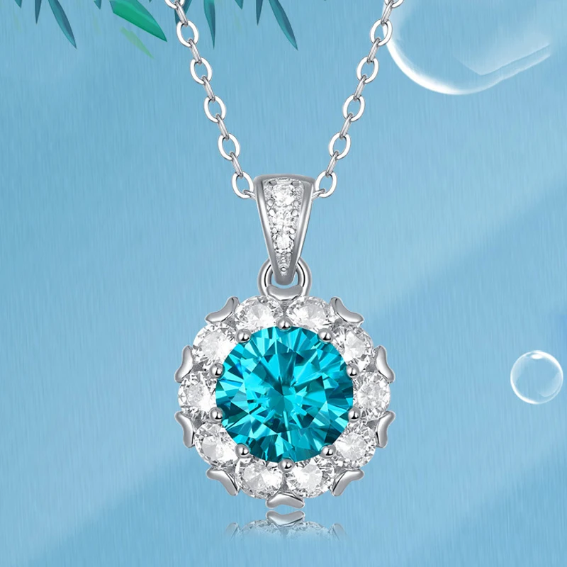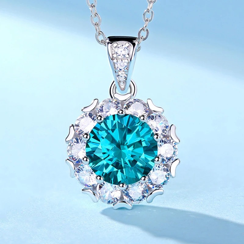 COSYA 100% Серебро 925 пробы настоящее 1 карат Аквамарин Moissanite новый дизайн кулон ожерелье для женщин сверкающие ювелирные изделия