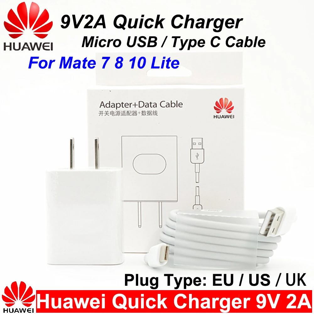 Быстрое зарядное устройство Huawei 9V2A UK/EU/US QC2.0 адаптер быстрой зарядки Type C/Micro USB кабель для Mate 7 8 10Lite P8 9 10Lite Honor 8