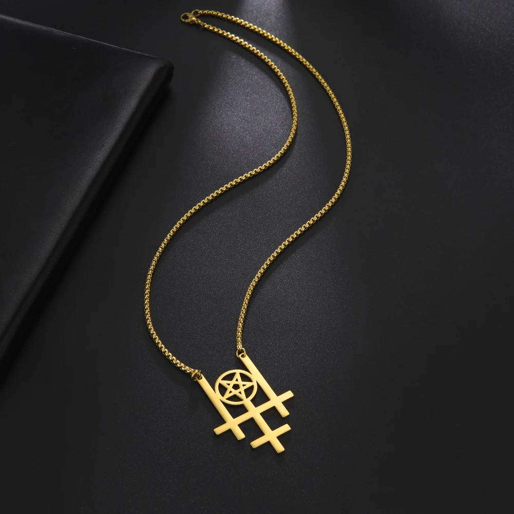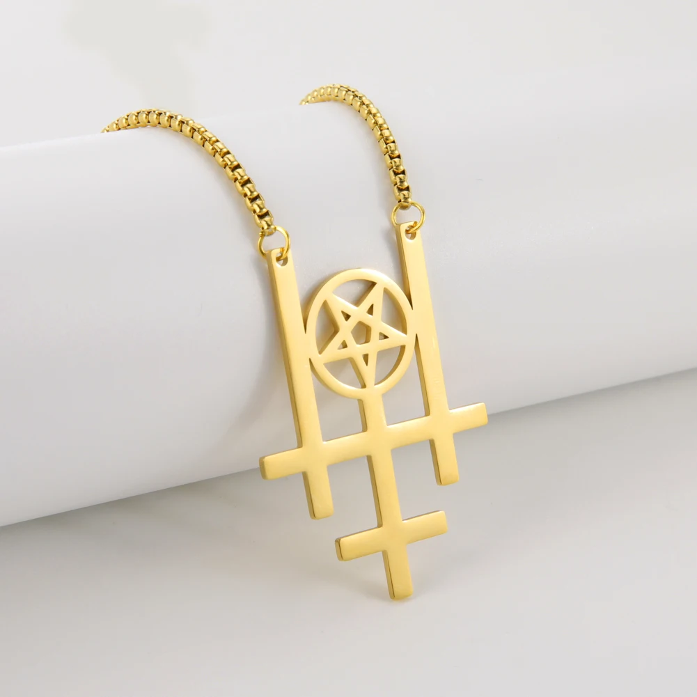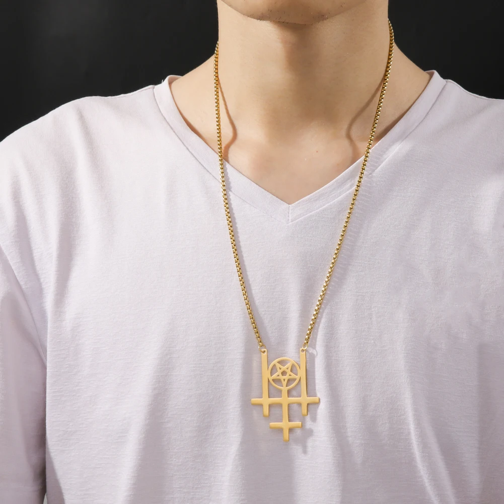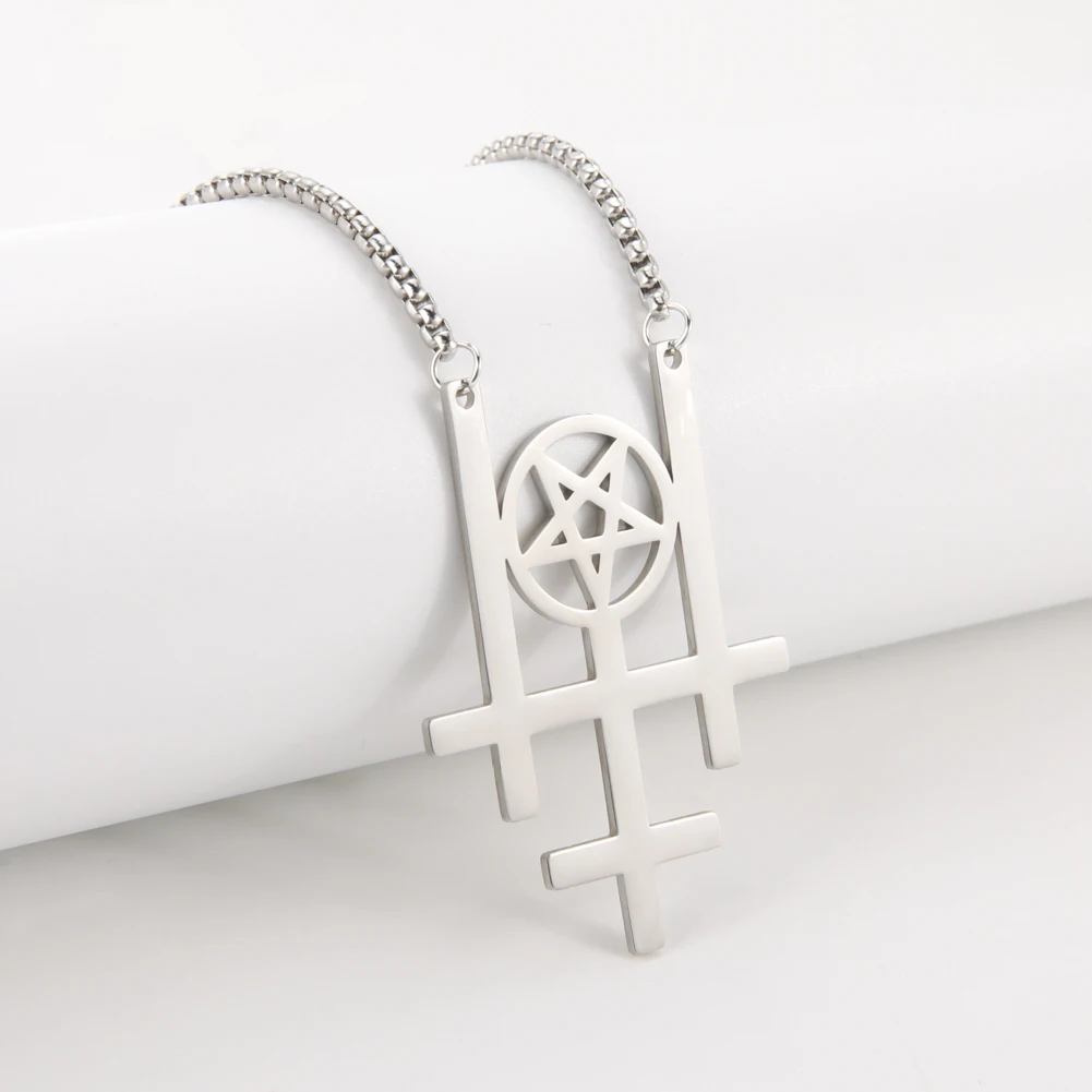 Название продукта: тройнойПеревёрнутый крестОжерелье из нержавеющей стали
