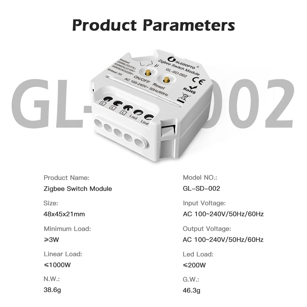 Gledopto Zigbee3.0 умный модуль без нейтрального переключателя