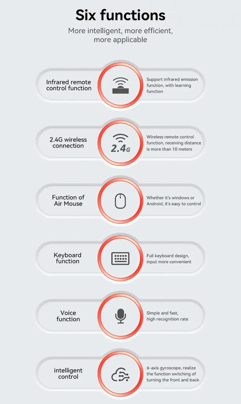 Он может предоставить людям уникальный и способный инструмент для управления их ПК, smart TV, Android TV Box, медиаплеер, телеприставка, просто перемещая его прямо в воздух.