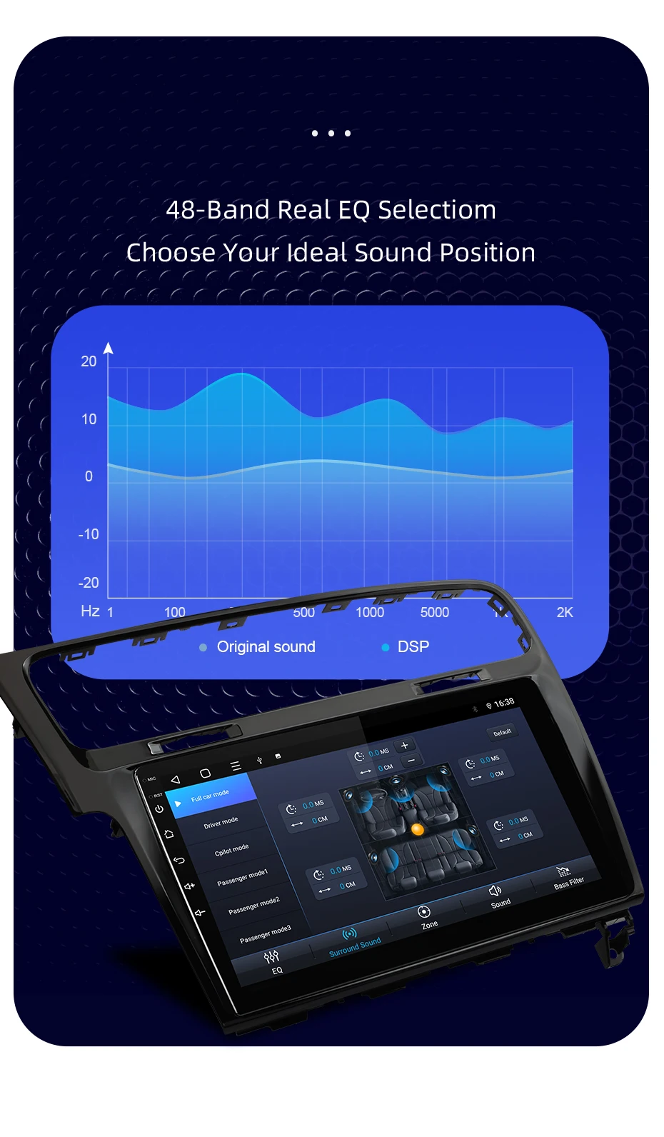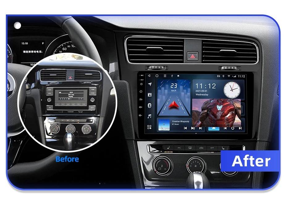 1. С декодером Canbus, поддержкой рулевого колеса и оригинальным автомобильным информационным дисплеем.