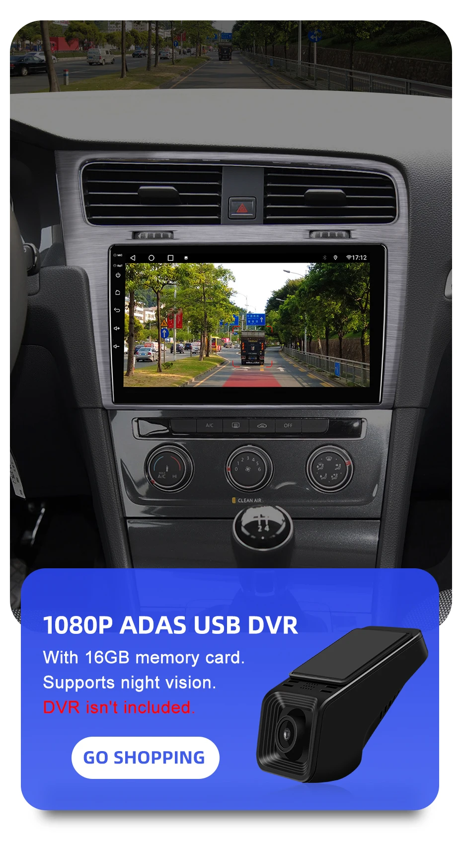 Поддерживает 1080P USB DVR, вам просто нужно подключиться к видеорегистраторУ через USB. Легко устанавливается.