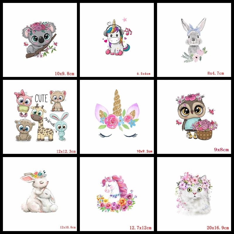 Мультяшные животные серии утюжок Переводные патчи для одежды Единорог кошка тигр аппликация теплопередача термо наклейки ткань сделай сам