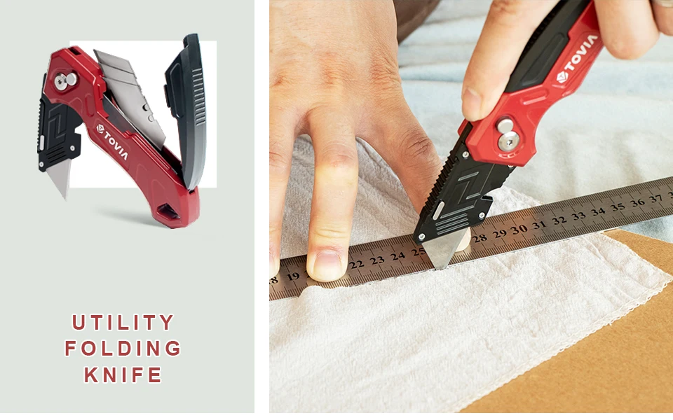 【Комфорт для использования 】наш нож для резки коробок изготовлен с тяжелой ручкой из цинкового сплава и противоскользящей рукояткой ergonimic, которая обеспечивает большую безопасность и комфорт для вас. Складной нож Легкий и компактный и поставляется с зажимом для ремня, что позволяет легко брать в любом месте. С отверстием можно повесить на стену.
