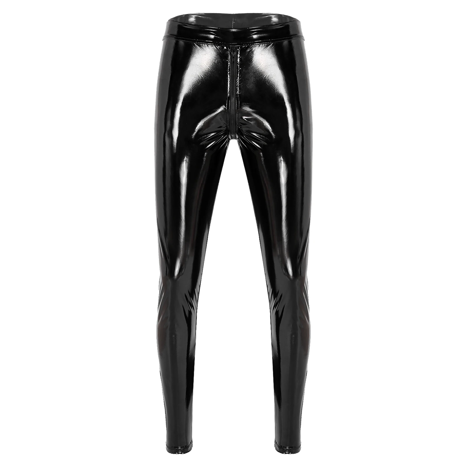 Мужские брюки из лакированной кожи с эффектом потертости; Блестящие прямые брюки со средней талией; Костюм для выступлений на сцене.