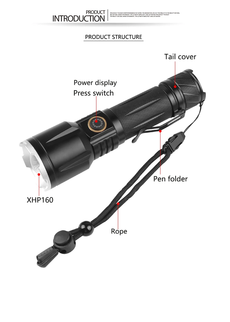 5 режимов: сильный светильник-средний Светильник-низкий светильник-вспышка-SOS