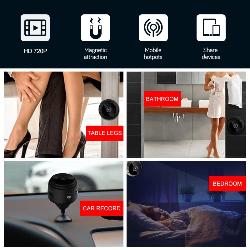 3、This small camera bathroom has a built-in magnet, can work well with any iron material, easily place anywhere. This small camera with a rigid charging cable and magic base, when charging while recording, you can manually rotate the recording angle 360 degrees.