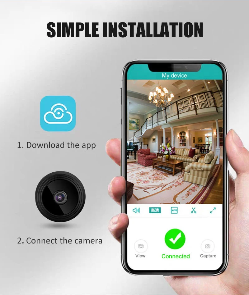 With a 90-degree viewing angle, the camera provides a wide viewing range in your room.