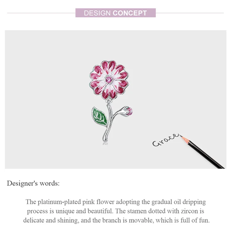 ❤[Описание] розовый цветок с платиновым покрытием с постепенным капельным маслом уникален и красив. Тычинки, усеченные цирконом, нежные и сияющие, и ветка подвижная, которая полна веселья.