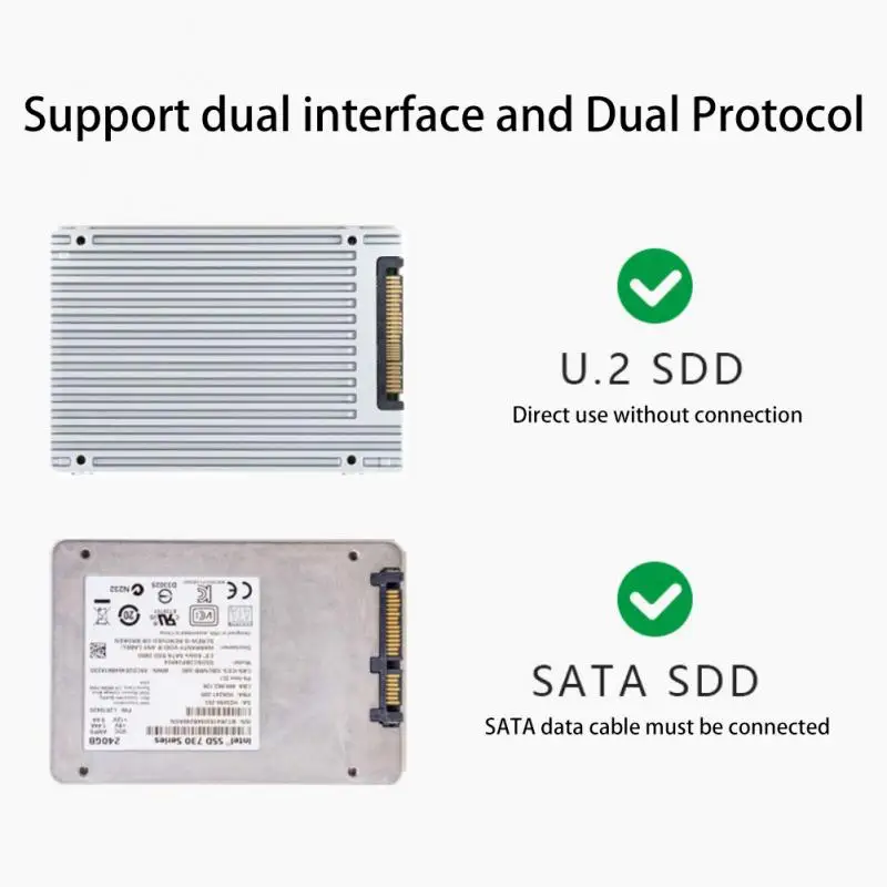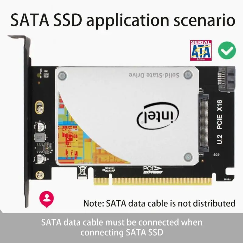 Подключите PCl-e U.2 SSD напрямую без подключения и Подключите SATA линию передачи данных при подключении SATA SSD.