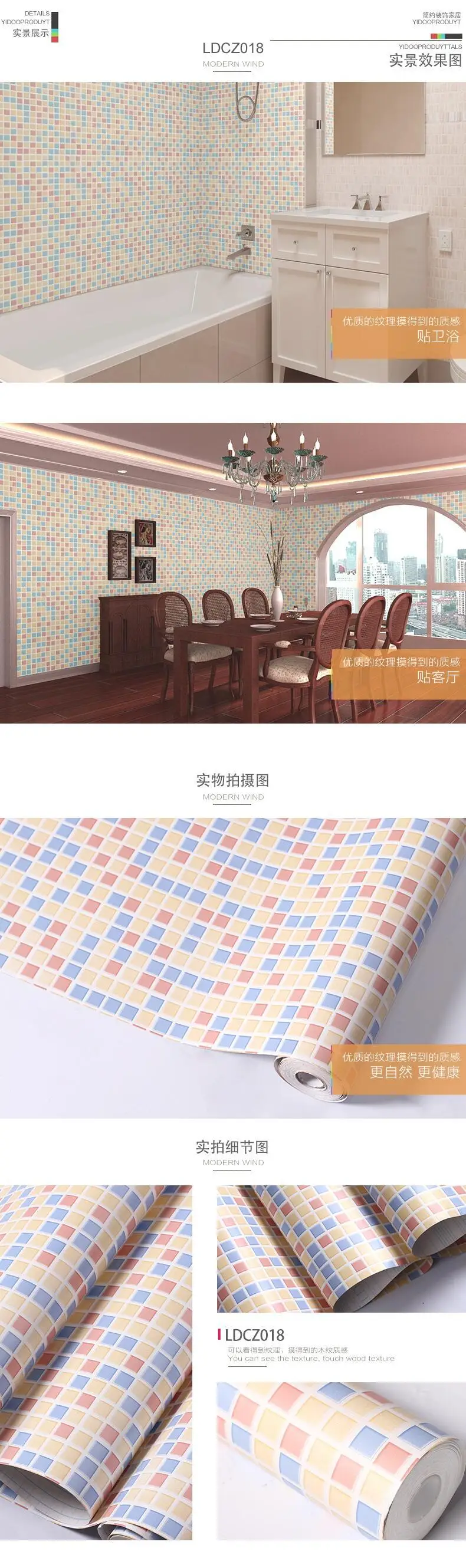 Nome dell'articolo: Mosaico Adesivo Carta Da Parati Impermeabile Adesivi per Piastrelle per Cucina Bagno Tavolo Decorazione Del Vinile Della Decorazione carta Da Parati del PVC Complementi Casa