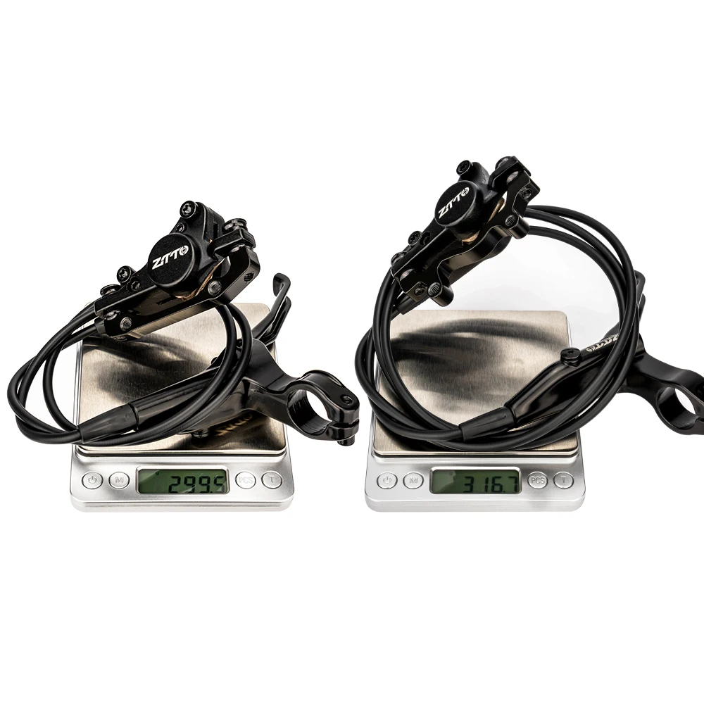 Weight: Front about 299g, Rear about 316g , total about 619g. not bad, at this price and this performance (full metal pistons and pads), I think this weight is reasonable. And this is the weight of the complete tubing. In order to take care of all bike models, this length is longer than others. When you cut it off, the actual weight will be lighter than this.