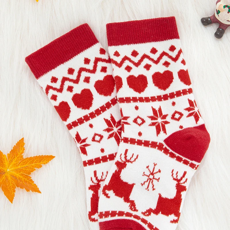 1 пара зимних теплых Хлопковых Носков, рождественские носки для родителей и детей, комплект с принтом оленя, детские новогодние Семейные подарочные креативные женские носки