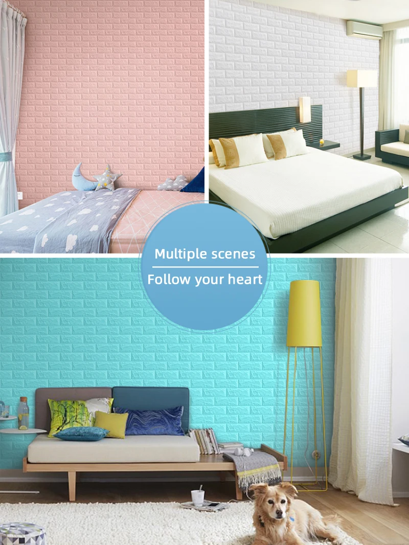 C. Многоцветные варианты: Эти 3D наклейки для обоев из пенопласта поставляются с различными цветами, которые можно смешивать и сочетать с эстетическим внешним видом и дизайном. 3D кирпичные обои, которые имеют розовый, синий, серый, зеленый, черный, коричневый и другие цвета для вас, чтобы выбрать свой любимый цвет.