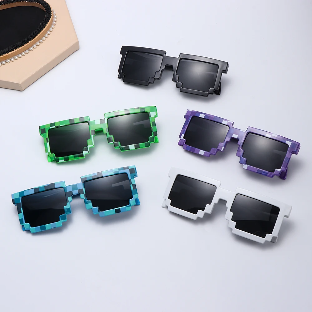 Модные детские очки для взрослых с мозаичной мозаикой, солнцезащитные очки Thug Life, ретро-очки для геймеров, вечерние очки на день рождения для костюмированной вечеринки