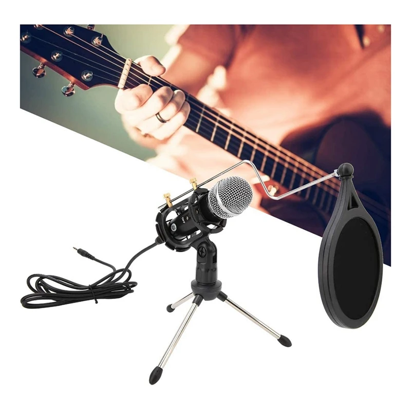 Портативный и прочный, легко носить с собой. В том числе микрофон с 3,5 мм кабель, регулируемый кронштейн, двойной акустический фильтр