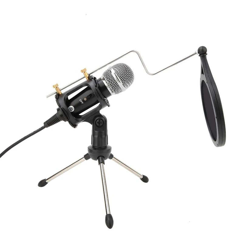 Студийный микрофон, конденсаторный микрофон записи и вещания с анти-распылительной сеткой, штатив подставка для пения телефона