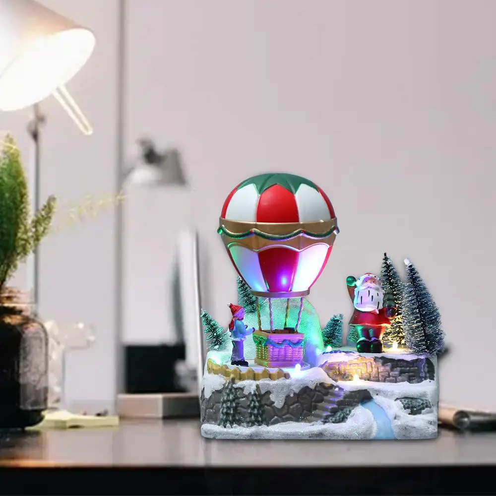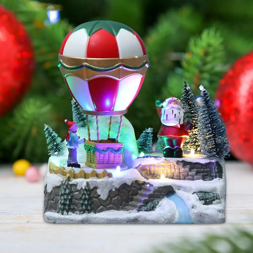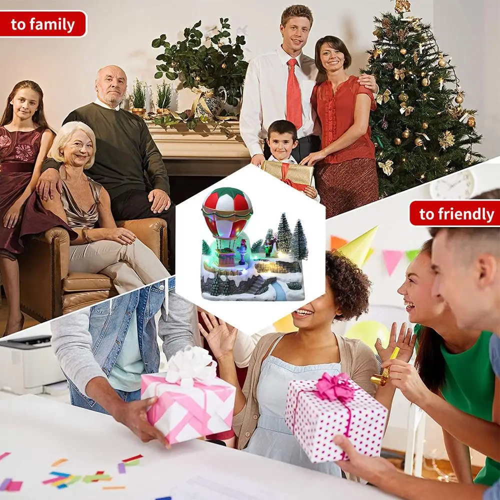 1. Рождественская деревенская домашняя сцена: Рождественская деревенская сцена содержит такие элементы, как снежные сцены, рождественские деревья, Санта-Клаус, матери и дети, вращающиеся тропические воздушные шары и т. д., дарящие людям приятные ощущения. Эта изысканная Рождественская сцена-идеальное праздничное украшение.