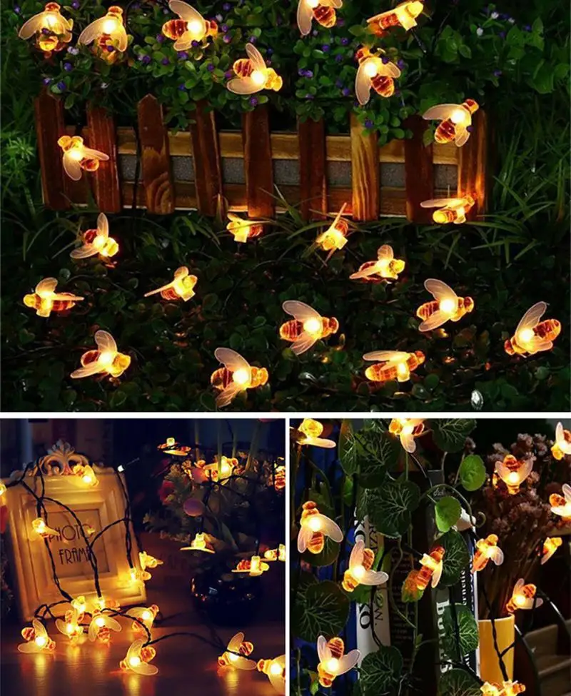 30/50/100 светодиодный моделирование Мёд пчелы солнечные Мощность струнные лампы гирляндой Батарея гирлянды сад Рождественский праздничный Декор на открытом воздухе