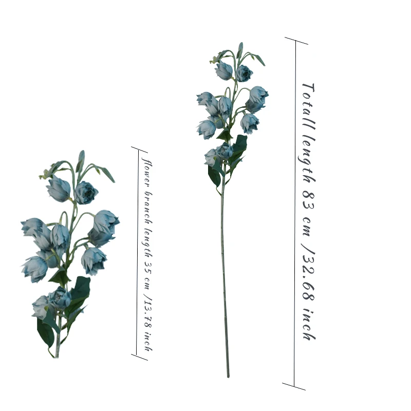 Измерение/Размер (прибл.):Общая длина: 83 см/32,68 дюйма, диаметр цветка: 4 см/1,57 дюймов, цветок, corolla длина: 35 см/13,78 дюйма, 15 цветов на вынос руля