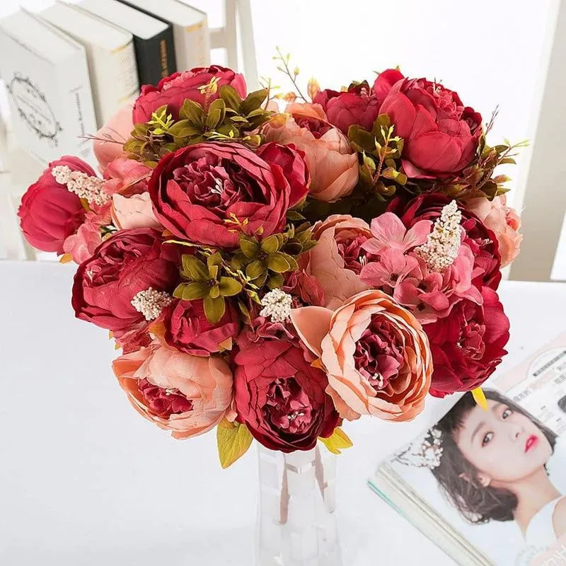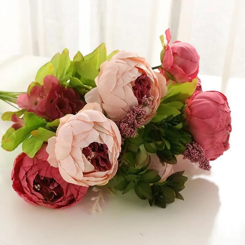 US $3,5 Описание товара 13 голов осенние войлочные пионы букет шелковые искусственные цветы розы для свадьбы дома вечерние украшения скандинавские Искусственные цветы пионы