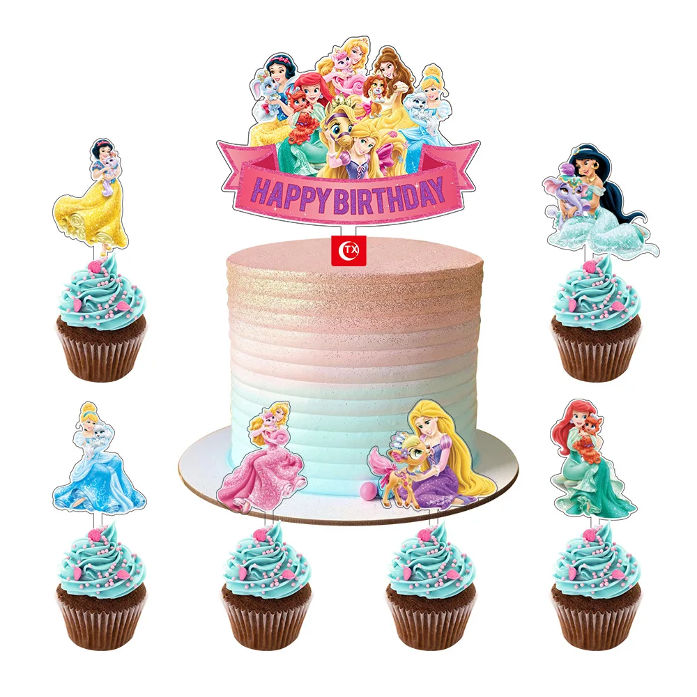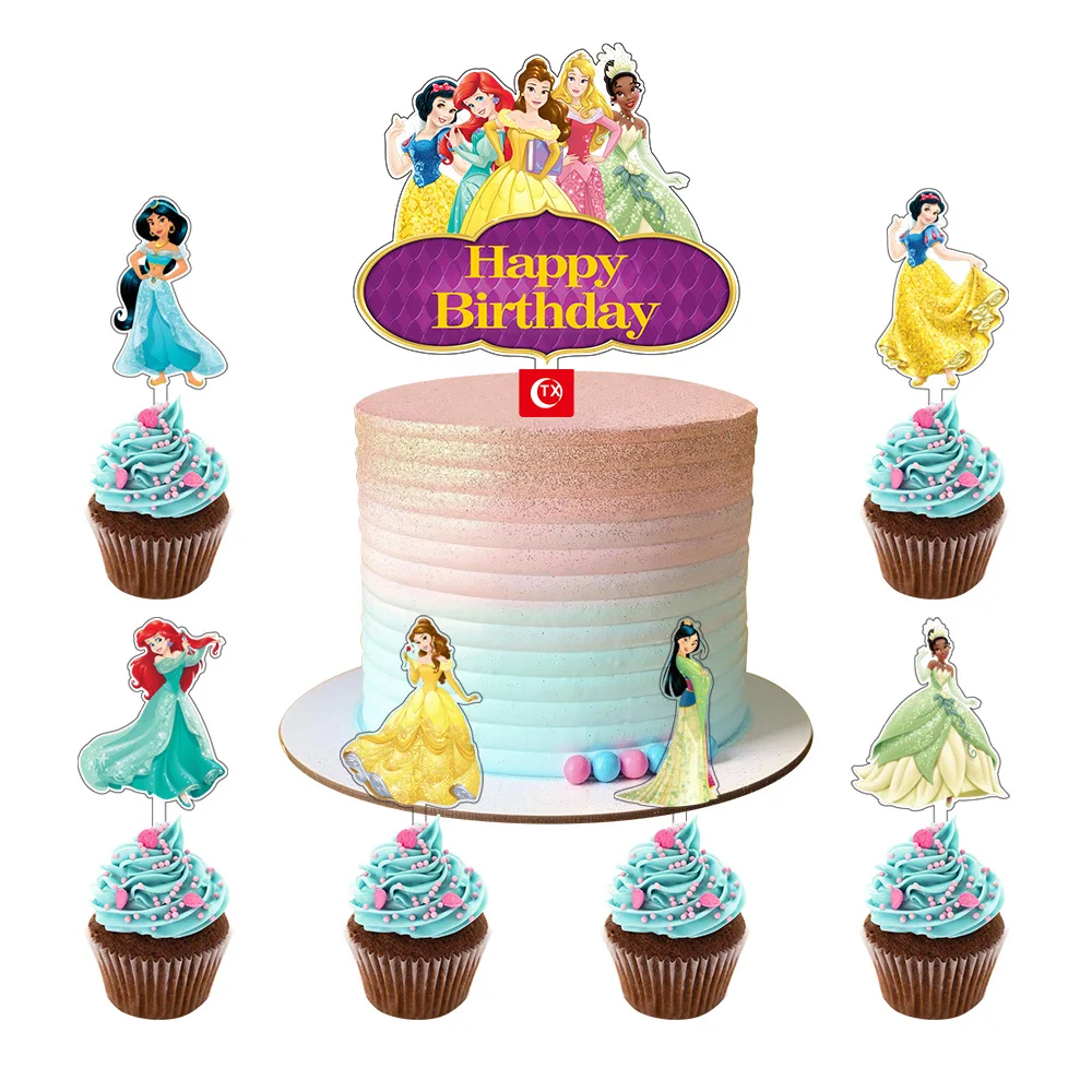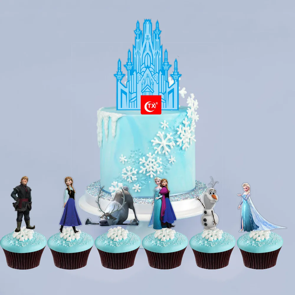 7 шт., украшение для торта «Холодное сердце», «Эльза», «Холодное сердце», принадлежности для дня рождения, акриловый торт, Топпер, шесть принцесс, «Алиса», торт, флаг, детский душ