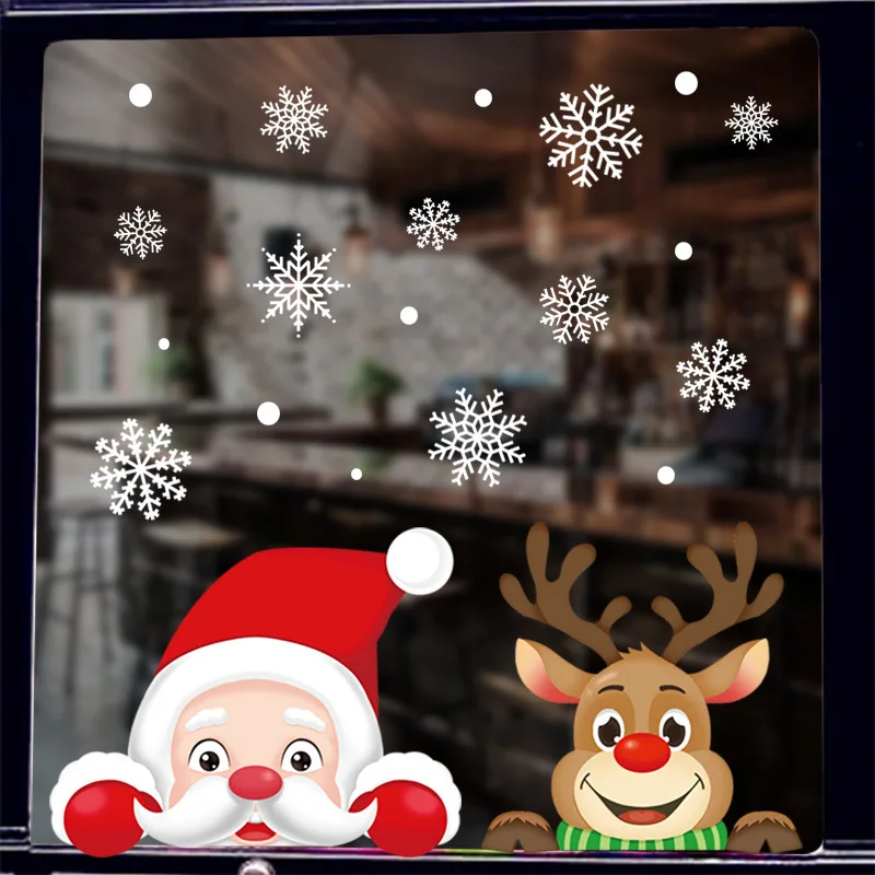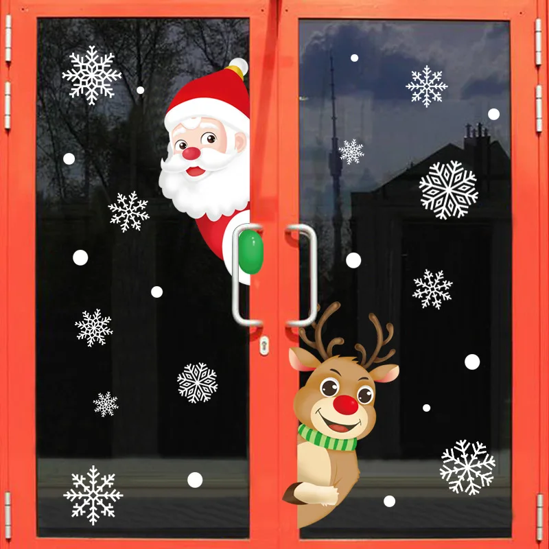 Новогодние наклейки на окно Санта Клаус Снежинка Олень Рождественское украшение на стену рождественские наклейки украшения для дома новый год 2022 Noel