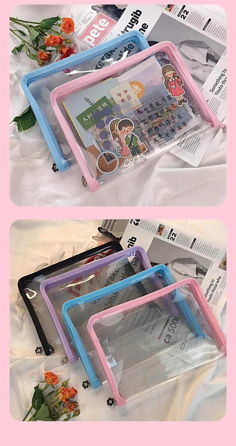Sharkbang A5 A4 сумка на молнии ПВХ PP блестящая прозрачная сумка-Органайзер для хранения папка для файлов Чехол-сумка держатель для канцелярских принадлежностей